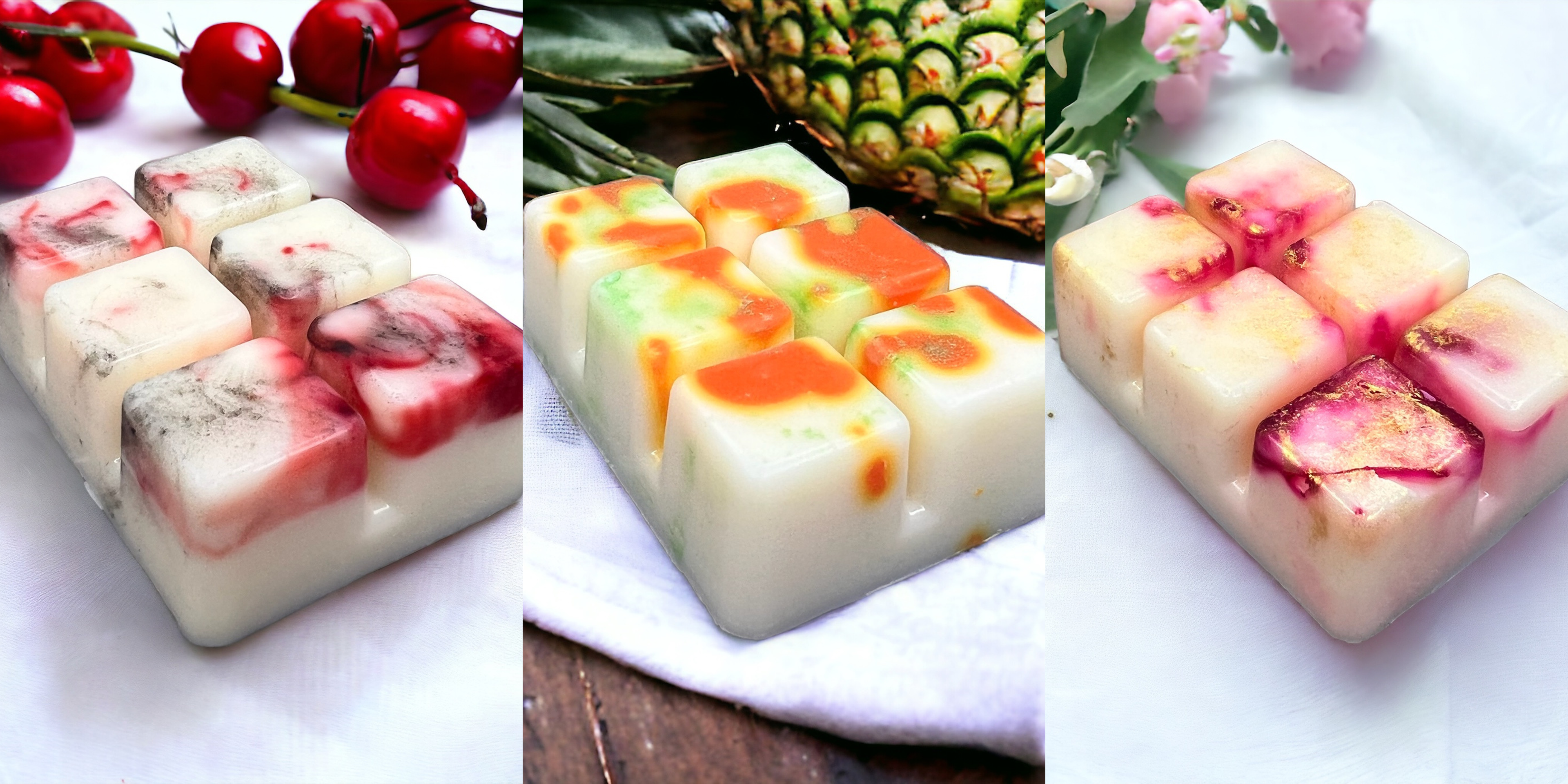 Our wax melts come in blocks of 6 cubes with each cube offering a minimum of 10 hours fragrance before swapping them out. Our 30cl candles weigh 220g and offer a minimum of 50hours burn time. However burn times for both can vary, dependent on room conditions and your fragrance choice.